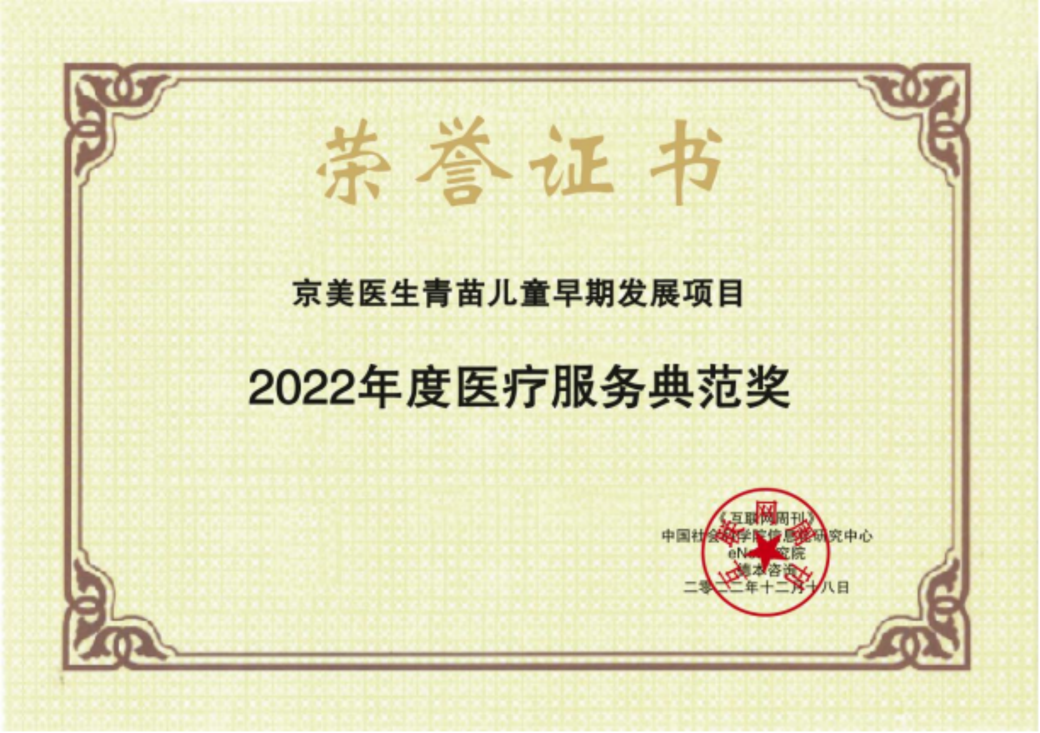 奖项:京美医生集团荣获金i奖「2022年度医疗服务典范奖」